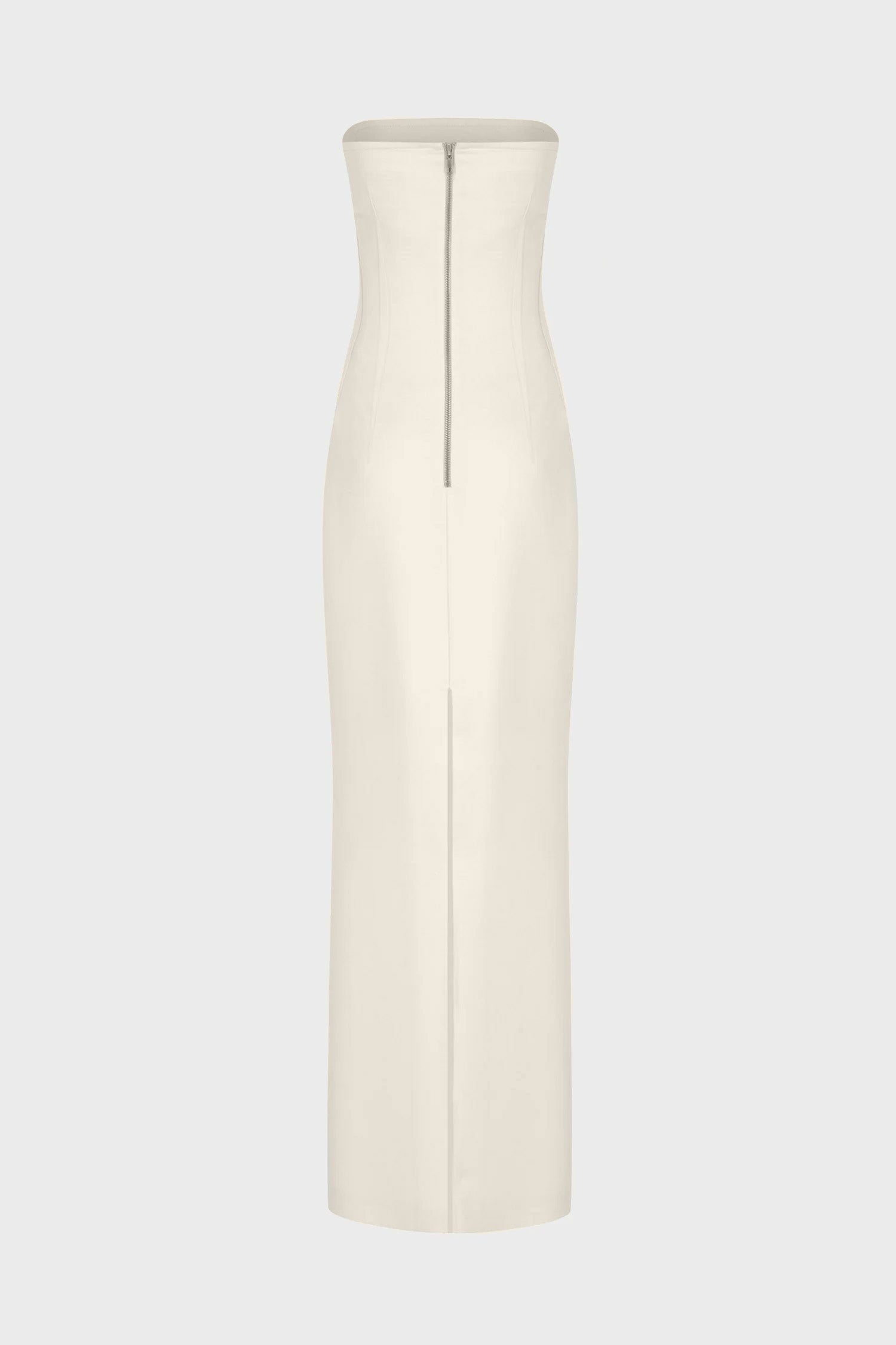STRAPLESS TAILORED MIDI DRESS IN SILK-BLEND WOOL